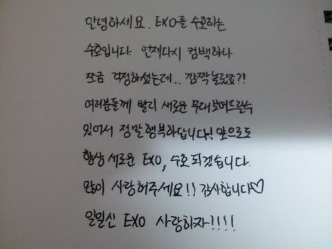 수호 글씨 잘쓰는듯 ㅋㅋ