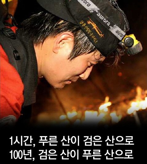 아래 워딩 그대로. 산불은 나무만 태우는게 아니죠!