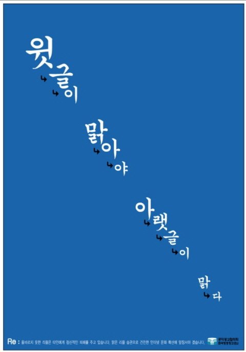 ‘윗글이 맑아야 아랫글이 맑다’ 라는 문구로 패러디 되었는데요.
