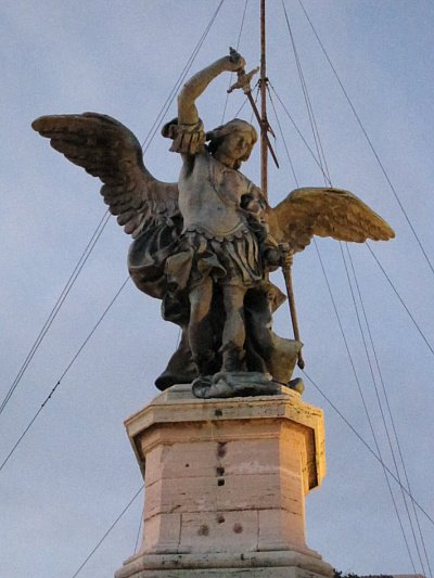 미카엘 동상이야 말로 산탄젤로성을 대표하는 동상인데요, 그레고리오라는 대교황이 흑사병이 창궐했던때에 꿈속에서 미카엘천사가 나타난후로 동상을 세우고 흑사병이 사그라들기 시작했다는 이야기가 있는 동상입니다.