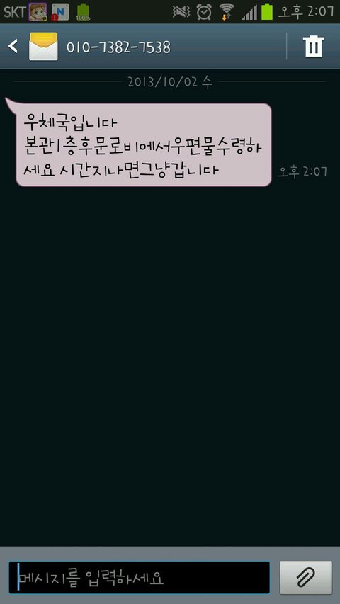 좀 전에 메시지가 왔어요