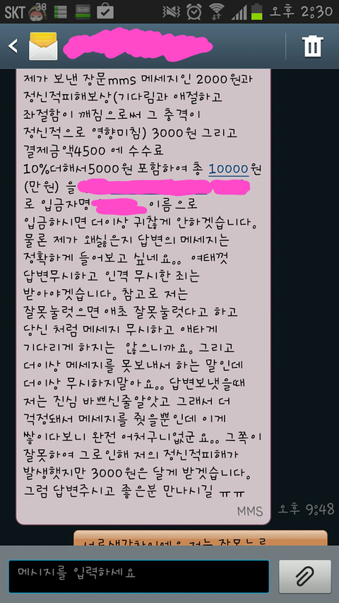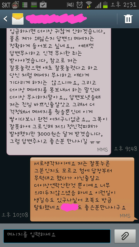 걍 둘까 하다가....빨리 마무리 짓고 싶었어요...정말 또 문자 받기도 싫었고...