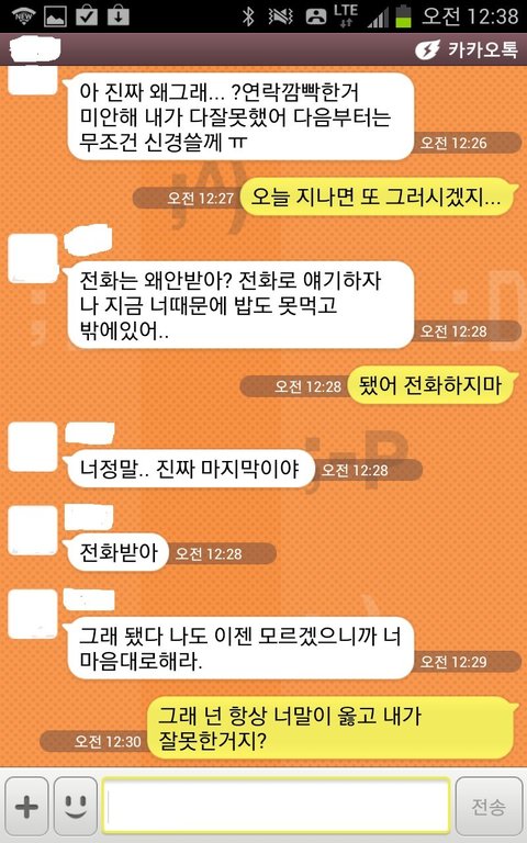 난 남자고 이 카톡만 봐서는 누구잘못이 큰지는 모르겠지만 남자도 잘못이없다고는 말 못하는듯 여자친구가 연락안되는거 싫어하면은 연락할려는 노력은 해야하는거아님>? 하루종일 폰 잡고 연락하는게 아니라도, 답장이 느리더라도, 회사마쳤으면 마쳤다 친구들이랑 점심먹으러가면 점심먹으러간다 ... 점심먹으러 간다라고 카톡하나만 보내노면은 연락이없어도 '아 친구들이랑 밥먹구나.. 친구들만나서 혼자카톡하는게 예의가아니지 내가기다려야지' 이런생각이라도하지 여자를 몰라도 한참모르네