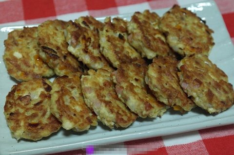 참치으깨서 다진야채와 함께 버무려 계란물입혀 구워낸 동그랑땡.