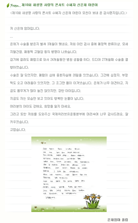 제10회 새생명 사랑의 콘서트.. 이웃위한 열번째 사랑노래에 감사편지가~~