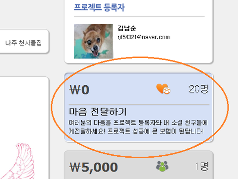 위드크라우드 홈피에 들어가면 <마음 전달하기>가 있습니다.