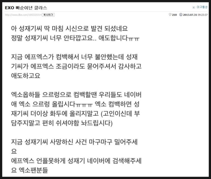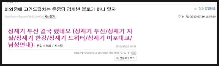 엑소팬인척 쓴 고인드립이 일베충들을 자극해 엄청난 분노로 몰아치고)
