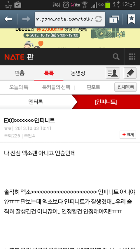 그글이잘못이긴한데 그전에 인슾이긴하지만 엑소가짱이라는사칭글이 있어서 그사람이 그글을쓴거같거든?근데 너네는 그거에배로 우리한테 욕을하면어떡해ㅋㅋ사과를하라고했어야지ㅋㅋㅋ야 너네가 공카에서지랄떨었을때 우리가사과받고 넘어갔잖아ㅋㅋㅋ우리도 똑같이해줘?ㅋㅋㅋ공카에서올린글에비하면 이건아무것도아니지않니?여러개도 아니고 딱하나가지고ㅋㅋ
