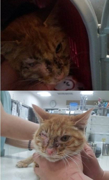 눈이 다 붙어있는 심각한 상태라 구조후 바로 병원에 데려가니