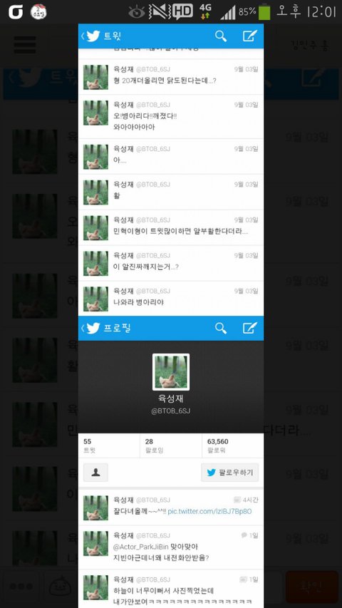 그래서 육성재는 트윗을 많이 올렸고 ㅋㅋㅋ 이민혁이 몰래 육성재 계정으로 들어가서