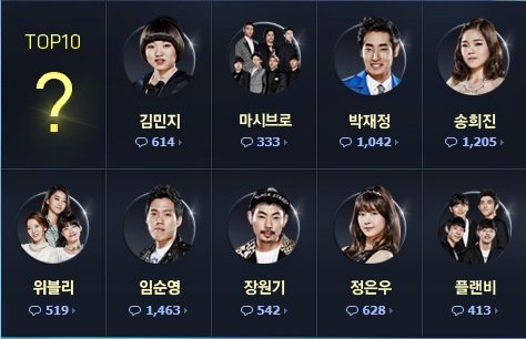 지금 탑텐되신 분들과 마지막 탑텐 주인공 후보들임