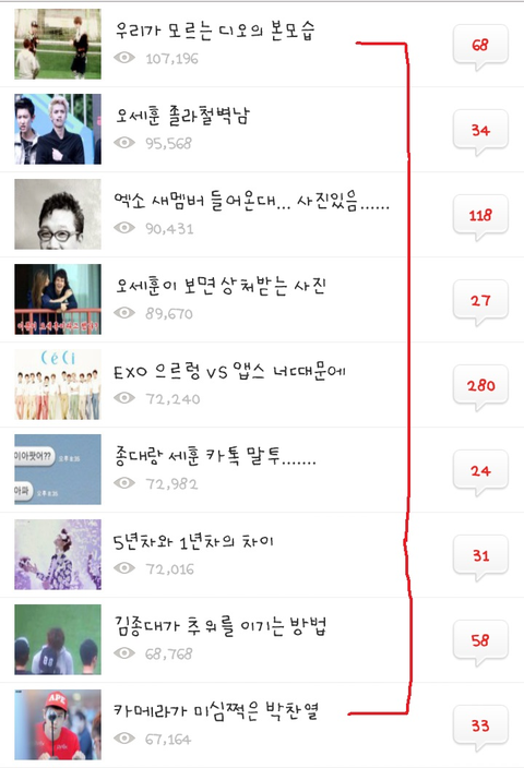 어떻게 된게 오늘의톡 올라온거 34개중에 씨.1발 33개가 EXO 게시글이냐??