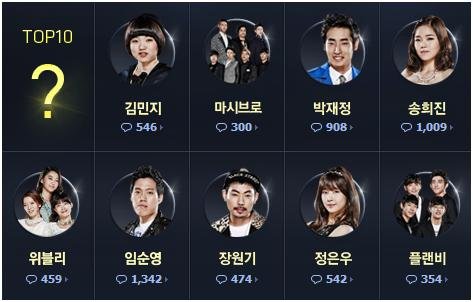 10번째 합격자가 누가될지 너무 궁금하네요~^0^압도적으로 박시환이 이기고 있지만 블랙위크 때처럼심사위원이 결과를 뒤엎는 또한번의 노림수 반전이 있을수도…?ㅎㅎ