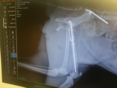 교통사고를 당해 대퇴부 및 골반골절로 안락사 판정을 받았고