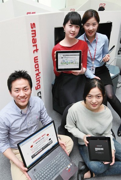 이석채 KT 회장은 직원이 집에서 가까운 사무실에서 일할 수 있는 ‘스마트워킹’ 제도를 일찌감치 시행해왔다. 지난해 9월부터 경기 성남시 분당 사옥에 스마트워킹센터를 개관해 운영 중이다. 한 예로 분당에서 서울 광화문 사옥으로 출퇴근해온 직원들은 분당 스마트워킹센터에 출근해 광화문의 자기 사무실과 비슷한 작업환경에서 근무할 수 있다는 얘기다.