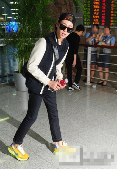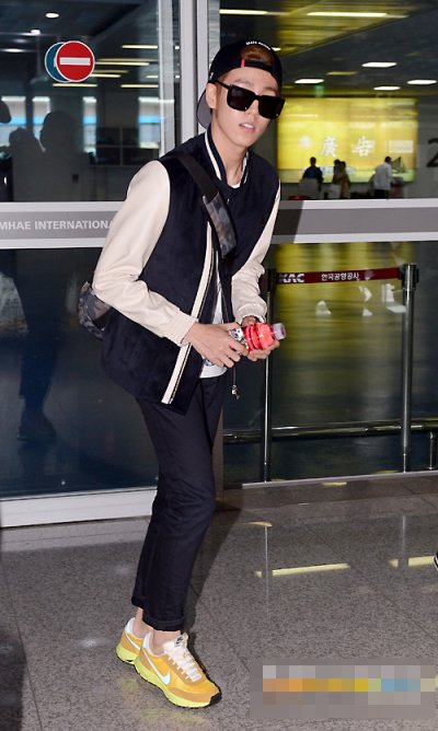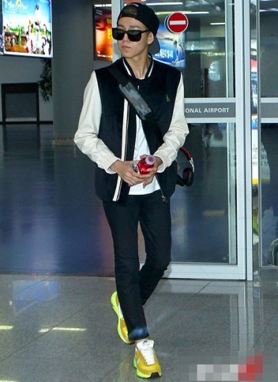 코디 힘 없이 혼자 입은 사복으로 공항에 온 것 같은데