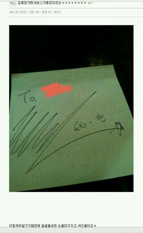 휘갈긴 싸인이 웃기면서도 감동이다ㅠㅠ 눈마주쳐주면서 싸인을 하니까 그렇게 되는게