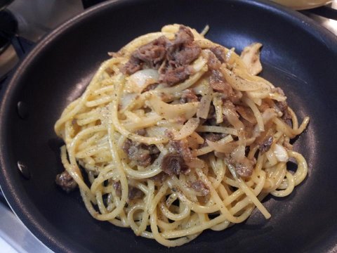 불고기가 밥한끼 먹기엔 적다 싶을정도로, 어정쩡하게 남았을 때 좋을 것 같아요! 그냥 불고기 볶다가, 익힌 파스타면에 올리브오일, 파마산 치즈가루, 달걀노른자, 바질이나 파슬리가루 있으면 조금 넣고 버무리면 되는데 정말 맛있어요! 물론 열무김치가 있다면 맛은 두배입니다...