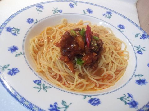 낮에 친구 초대해서 닭볶음탕이랑 이것저것 해주고.. 닭볶음탕 하고 남은 닭과, 먹다남은 닭볶음탕 처리하려고 만든 파스타인데요, 이거 해먹고서 흥분해서... '와! 지금까지 만든 요리중에 제일 맛있다 진짜!!!!' 매콤 칼칼하고 담백한 육수와 달콤한 끝맛이 나는 닭고기의 조화는 그야말로 환상적이었어요. 한국인이라면 누구나 좋아할 듯한 맛...