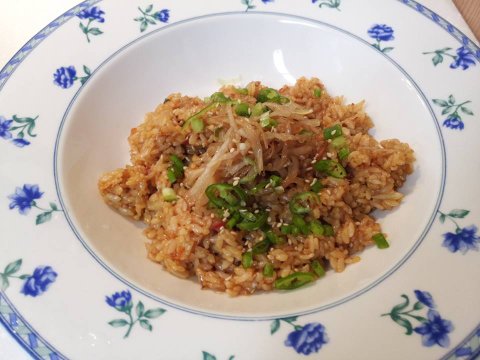게장을 알뜰살뜰하게 먹을 수 있는 요리.. 게장 살 발라내고 게 껍질에 물 약간 붓고 고추장이랑 된장 넣어서 푸욱 끓이다가 게살+밥 볶다가 끓인 양념국물 넣고 볶다가 모자란간 대충 맞추고, 위에 버터와 간장에 볶아낸 진미채 약간 올린건데 단백한게 맛있었어요.