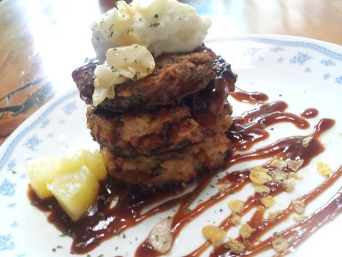 스테이크라고 해봐야 미트볼 만들고 남았던 고기반죽....
