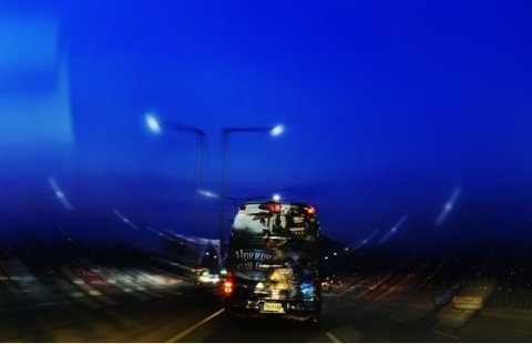 고속도로를 시원하게 달리는 음산한 버스가 등장하고...