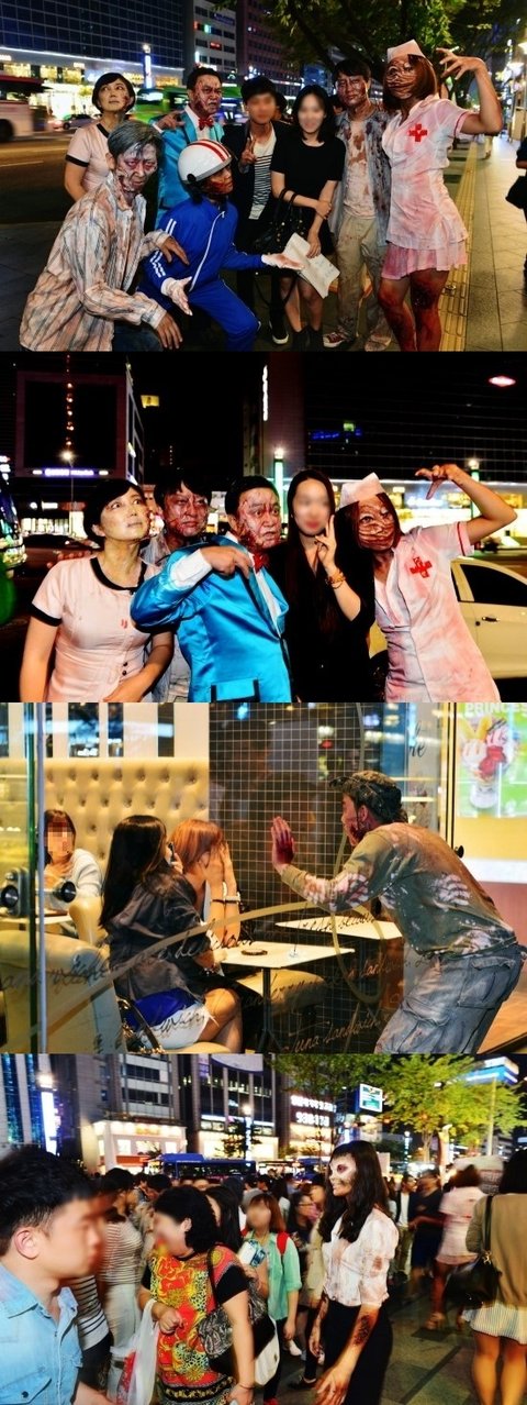 이 좀비들은 사람들이 밀집되어있는 이태원 가로수길, 강남역에서 거리 퍼포먼스를 진행했는데요![]()
