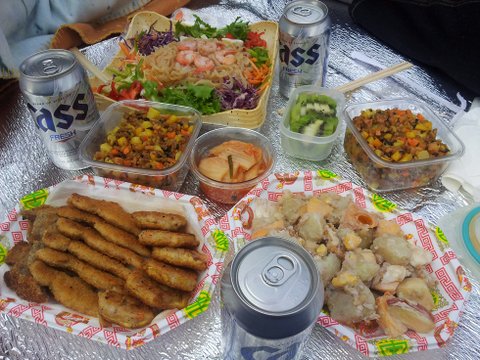 집에있던 용가리랑 동그랑땡 튀기고 감자 샐러드(마요네즈를 거의 안넣었더니 시간 지나니까색이 이상함....)랑 카레가루 넣은 볶음밥에 근처 마트에서 해파리냉채(ㅋㅋㅋ)사서 친구들이랑 묵묵묵