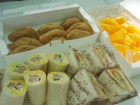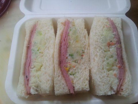 롤 샌드위치, 감자 샐러드 샌드위치, 유부초밥 과일 ㅎㅎ