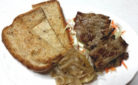 <저녁- 호밀식빵 1쪽, 소고기(채끝살)120g, 양파쨈, 생야채>