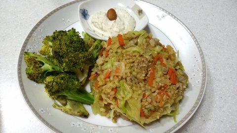 <점심-카레안심볶음밥, 구운브로콜리+두부마요네즈>