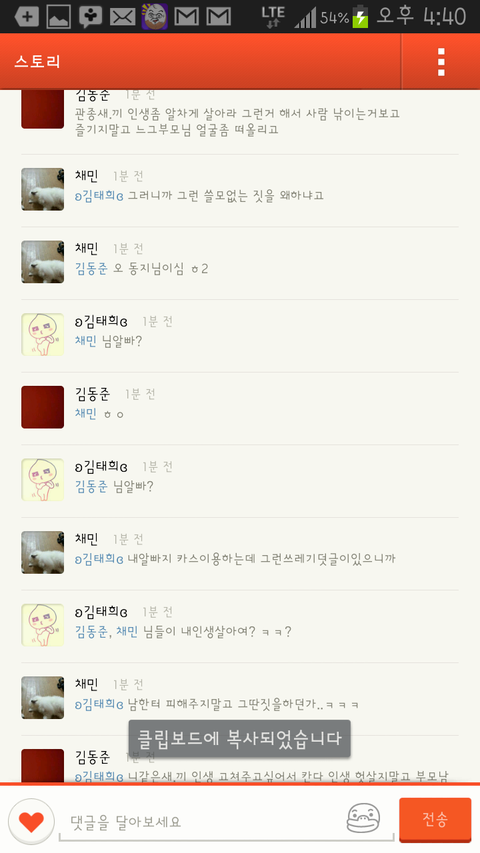 다보고 기분좋게 덧글창을 보는데