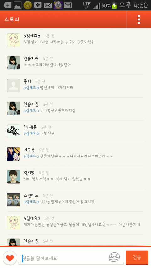 갑자기 기분이 드러워져서 김태희 메인 홈에가서 욕을 썼습니다만