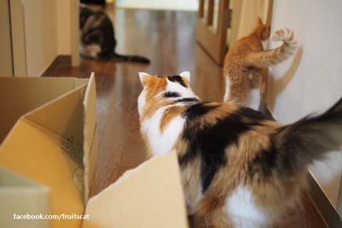 삼삼오오 몰려드는 유봉이네 고양이들~ 앙즈가 이럴 때만 제일 빠릅니다. 퐁즈가 제일 빠를 거 같지만... 동작이 둔해서...  유봉인 안 나대고 뒤에서 아련광선을 쏟아댑니다.