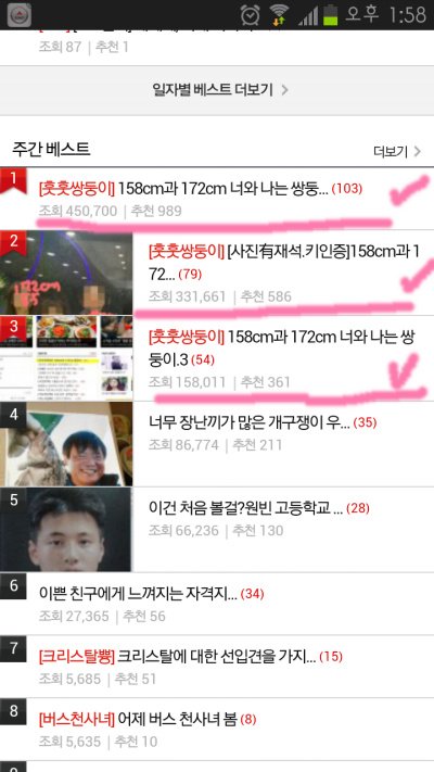 꺅 ㅋㅋ제 글이 1,2,3위라니 ㅠㅠ