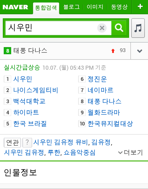 시우민!!!!!네이버 실검!!!!!1위!!!!짠~!