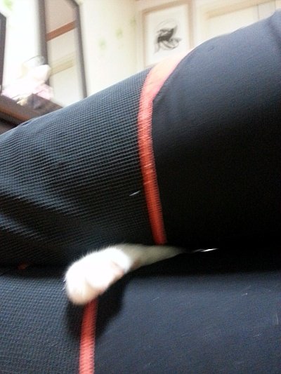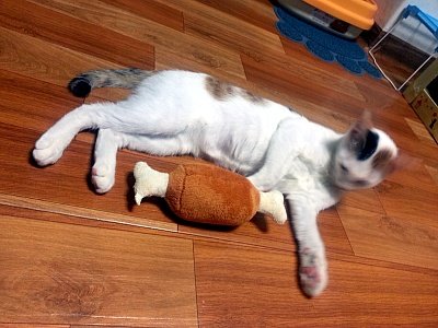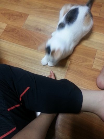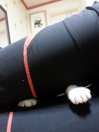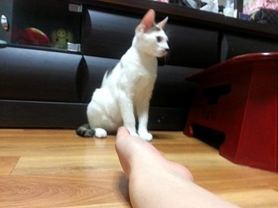 다리 사이로 나온 집사의 손가락을 공격할라고 궁디를 들쑥날쑥~~