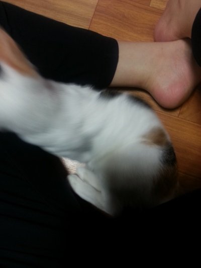 내가 누워 있으니 완두도 따라서 역동적인 내 배위에 안착!!!