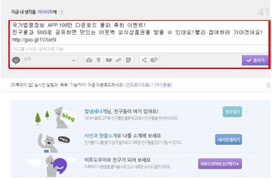자! 이제 두 번째, “100만 돌파 소식을 SNS로 공유하는” 이벤트에요.