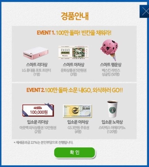 뿐 만 아닌! 문화상품권, 베스킨라빈스 아이스크림, GS 주유권, 스타벅스 커피까지 !