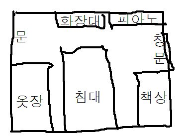 Foot가락으로 그린 그림이라 알아보기 힘들겠지만 가구 배치가 이랬음ㅋㅋㅋㅋ