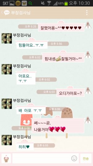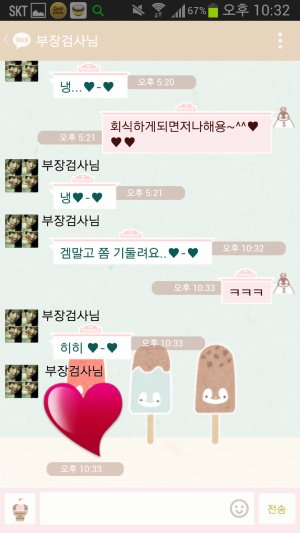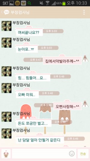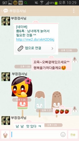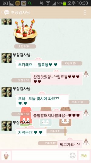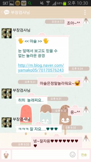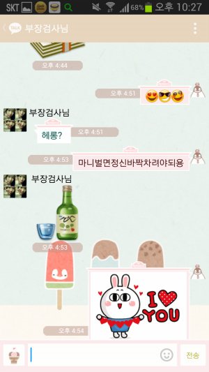 시작은 바야흐로 1년전ㅋㅋㅋㅋㅋㅋ 엄빠는 아주 가벼운 사랑의 세레나데를 서로 외치시며 시작함ㅋㅋㅋㅋ 아 여기서 보내는게 아빠고 저기 부장검사님이라고 쓰여있는게 엄마임ㅋㅋ(왜 부장검사냐면 내꿈이 한때 검사였음....지나가던 개도 웃을 소리란건 이미 내가 제일 잘암...ㅠ 그러나 아빠는 내 꿈을 접지말라며 항상 용기를 주시는 성격 좋은 분이심...ㅠ 그래서 내이름은 우리검사님이고 엄마는 부장검사님으로 돼있음ㅋㅋㅋㅋㅋ)