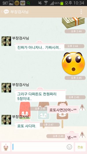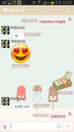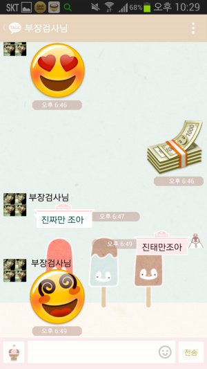 아빠가 다시한번 다짐을 하며 돈이모티콘을 보내자 엄마는 가짜는 싫다며 진짜만 좋다고 하심. 그러나 아빠는 자기의 이름을 활용하여 진태만 조아 라는 언어유희를 펼치심.ㅋㅋㅋㅋㅋㅋ