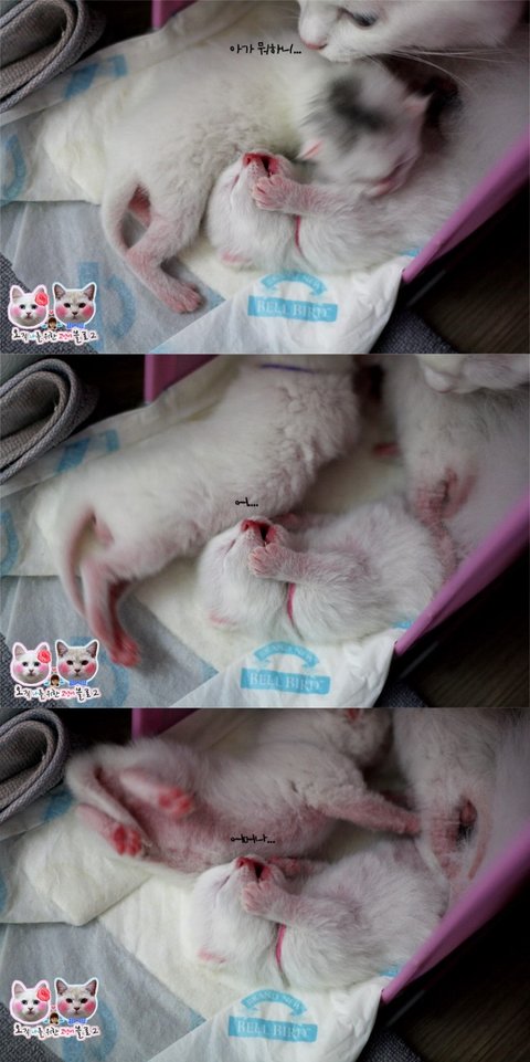 그리고 애기들 태어난지 3일 후, 남자아가부터 중성화 완료했답니당
