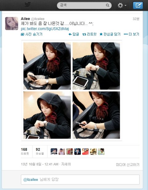 요건 따끈따끈한 에일리 트위터 사진!