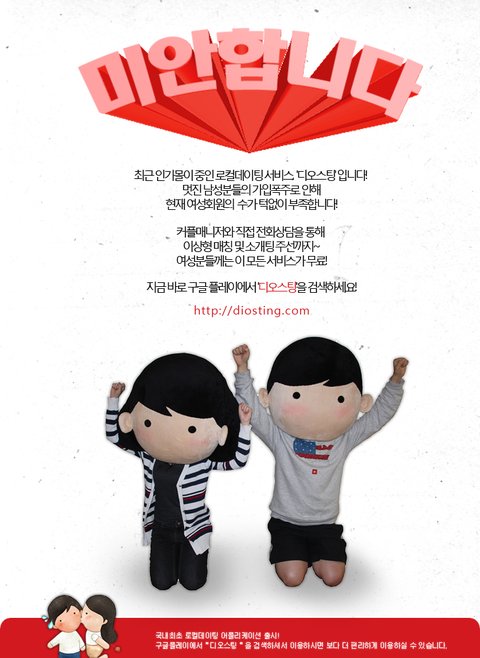 소개팅 사이트에 남성분들이 너무 많이 가입해서 여자가 부족하다네요 가입좀 하세요 웃기네요 ㅋ 사이트주소 :