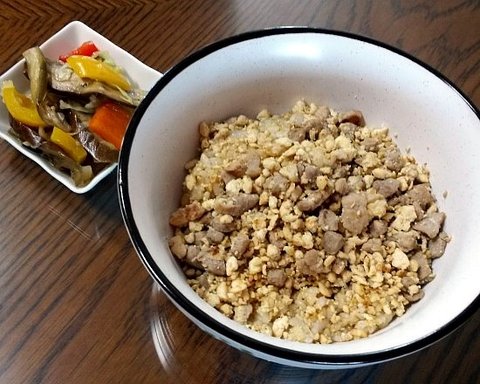 물기 제거해준 두부와 안심 간장양념에 볶아서 밥에 얹어 먹는 메뉴~