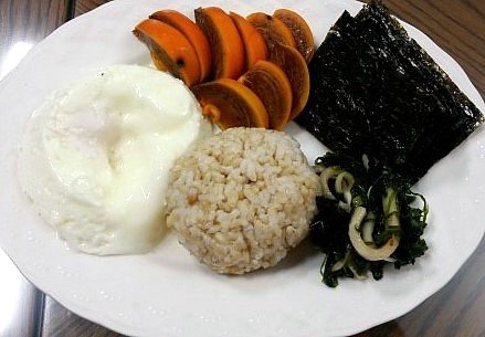 <아침- 현미밥 100g, 계란찜, 김, 파래무침, 단감1/2>