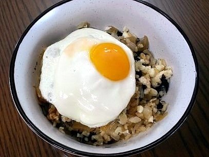 현미밥에 계란 노른자1, 흰자3 넣고 양파 썰어올리고 전자렌지에 2분30초 돌리면 완성인 메뉴!