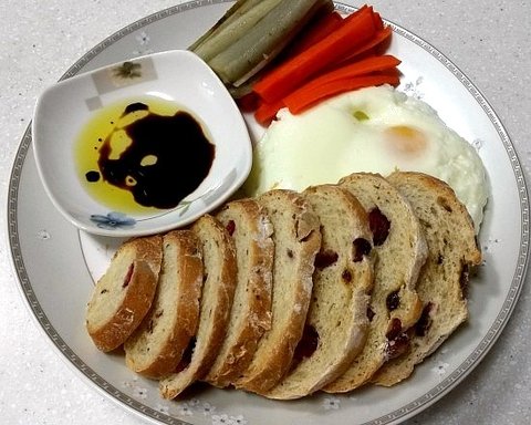 <아침- 호밀빵 80g, 계란찜, 생야채, 발사믹소스>
